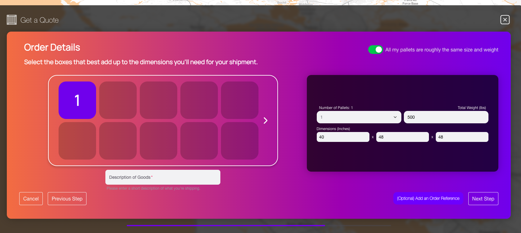 We're excited to be helping on your first Oway order via our website! In order to make your experience seamless, we want to make sure you're aware of all the steps that go into it. All the information we ask for is standard and helps to make sure we're providing you with our industry leading rates on freight shipping.
